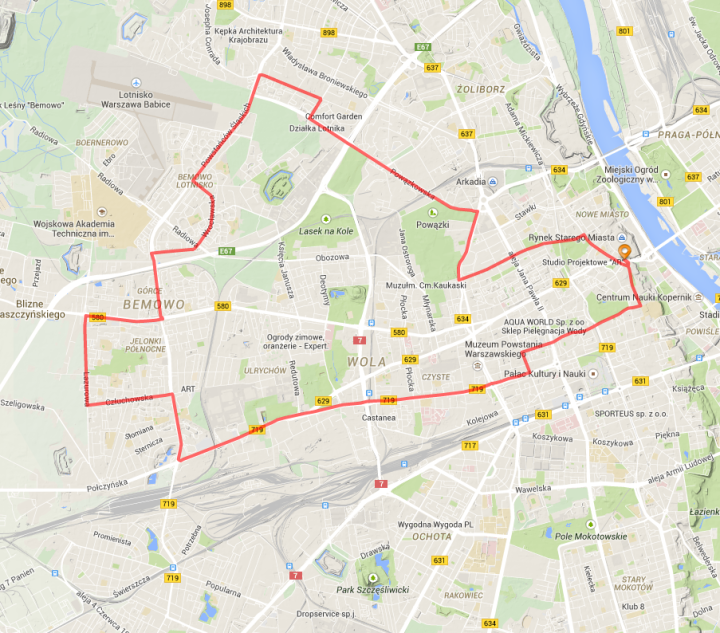 O godz. 18 rowerzyści Krytycznej Masy Rowerowej wyruszą z placu Zamkowego i pojadą trasą: Krakowskie Przedmieście, Królewska, Grzybowska, Żelazna, Prosta, Kasprzaka, Wolska, Połczyńska, Powstańców Śląskich, Człuchowska, Lazurowa, Górczewska, Powstańców Śląskich, Wrocławska, Powstańców Śląskich, Reymonta, Kochanowskiego, Rudnickiego, Maczka, Powązkowska, Okopowa, Anielewicza, Świętojerska, pl. Krasińskich, Miodowa, Senatorska, Plac Zamkowy. Łącznie pokonają około 26 kilometrów.